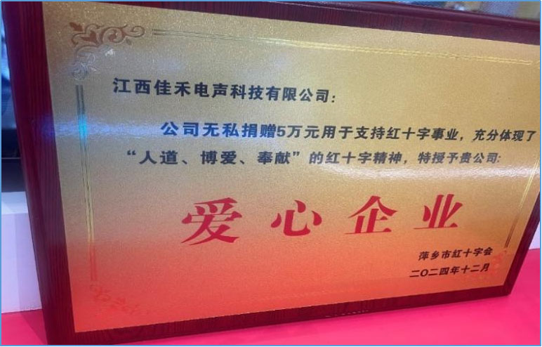 •东莞J9国际2024年清洁能源使用占比超过30%2024年8月江西J9国际电声科技有限公司向上栗县仁爱医疗公益捐款五万元(¥50000.00)